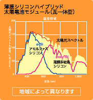| クレバリーホームが採用している太陽光発電システムは、瓦一体型なので、従来のように瓦に無駄がなく、屋根の形も美しくとても自然です。しかも、太陽電池には、電気に変換できる光の波長(感度帯帯域)が異なるふたつのシリコンを備えた「薄膜シリコンハイブリッド太陽電池」。発煙効率を従来と比べ約30%も高めた最先端のタイプです。まさに才色兼備の太陽光発電システムです。 |