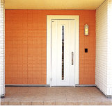 高断熱の玄関ドアは、ホワイトとブラックの2タイプをご用意。 玄関ポーチから三和土にかけて敷き詰めるタイルは、 大判の無釉マット仕上げで上品に仕上げました。