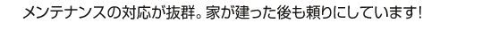 地盤強化と耐震設計も高ポイントだったそう。「あの中越地震でも、窓がぶるぶるっと揺れただけで、ダンプでも通ったのかな?と思っていたんですよ!」。引き渡し後に営業担当者が交代しましたが、対応には満足で、今後も安心との事でした。 |