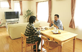 「食事をして寝るだけの家にはしたくない」というのが施主様のポリシー。難しい条件を乗り越え、広いスタジオのある自宅を完成させました。「最大の課題は防音。ほとんど音漏れのないレベルにまで仕上がって、ほっとしました」。夜でも時間を気にする事なく、ときに7〜8時間も演奏するとか。スタジオに隣接するのは、音楽鑑賞室兼ドリンクスペース。楽器を持ったままでも使いやすい高めのカウンターなど「演奏仲間たちの言いたい放題の注文もききました(笑)」。長時間の練習も快適に、音楽生活を満喫されています。 |