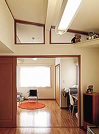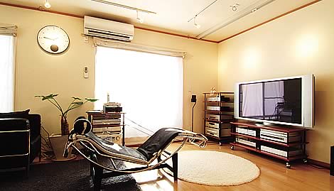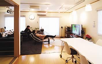 まず、生活の中心を日当たりのよい2階に定め、LDKに念願だったホームシアターを作りました。「週末は、ここで好きな映画を見るのが何よりの楽しみです」と笑顔のご主人。1階は「衣食住から独立したものにしたい」と現在はゲストスペースに。年をとった時にも、安心して使えるようバリアフリーの空間にされています。